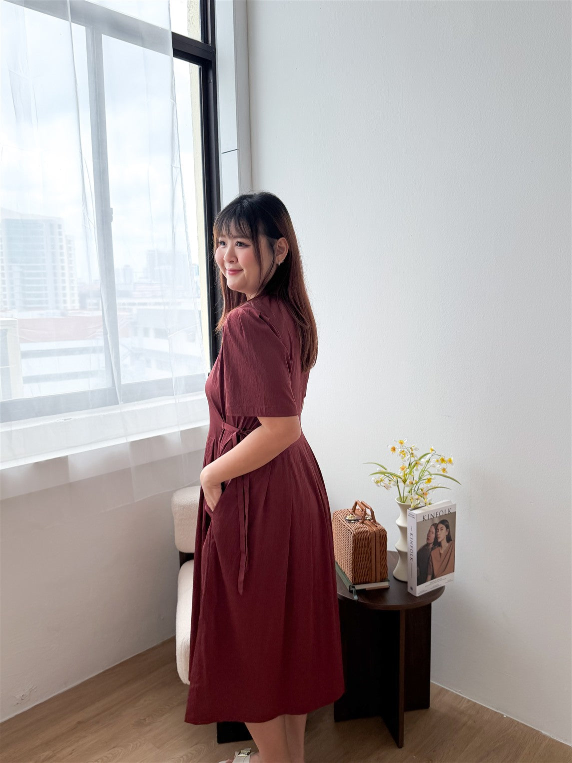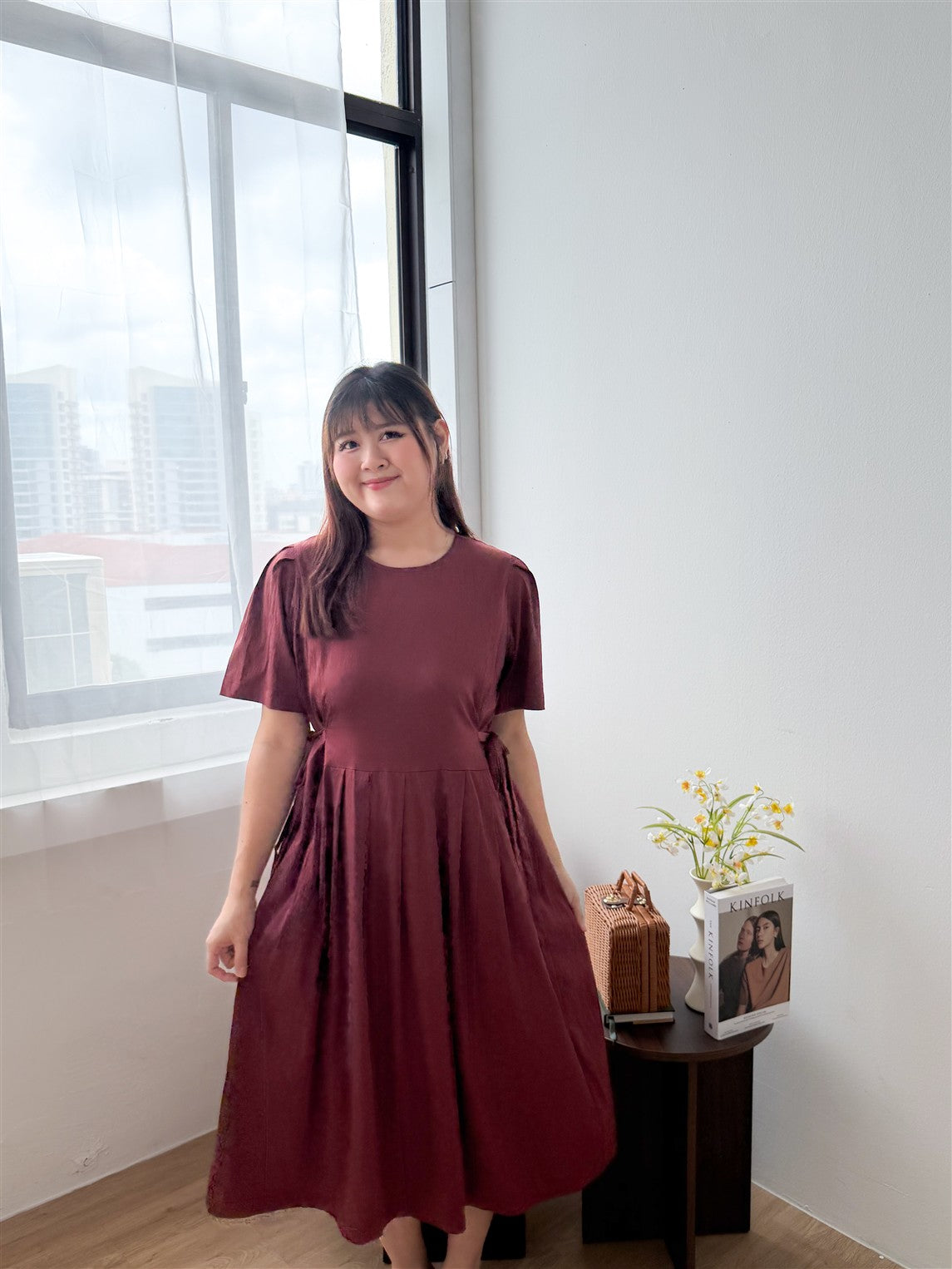 Minimal yet striking, effortlessly elegant, and easy to accessorize, the burgundy Ines Midi is the perfect wardrobe staple to shine in festive moments and evening affairs.